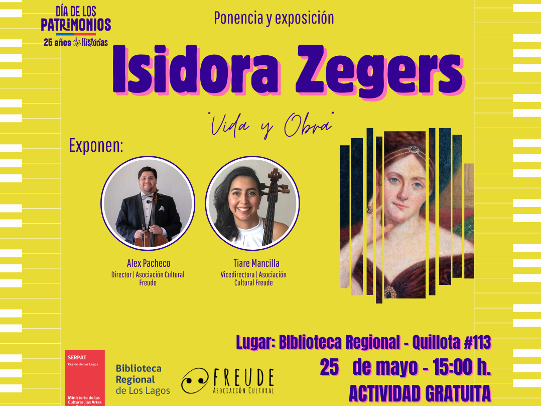 Este sábado 25 de mayo, te invitamos a una jornada especial dedicada al rescate musical patrimonial. Ven y descubre la vida y obra de la talentosa Isidora Zegers a través de una ponencia y exposición únicas.