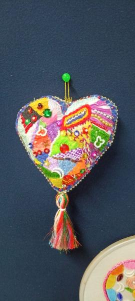 Según Oriana Sáez, relatora del taller, bordar es “crear con las manos es crear con el alma. Cada puntada, cada mostacilla, cada lentejuela, cada color tiene una historia. Fomenta la paciencia y la expresión; hacer algo con las manos nos enseña a esperar, a equivocarnos y a empezar de nuevo. También nos permite expresar lo que a veces no podemos decir con palabras. Cuando creamos juntas, bordamos vínculos. El bordado une generaciones, conecta corazones y crea espacios de encuentro. Bordar no solo embellece el mundo, lo sana, lo recuerda y lo transforma.”